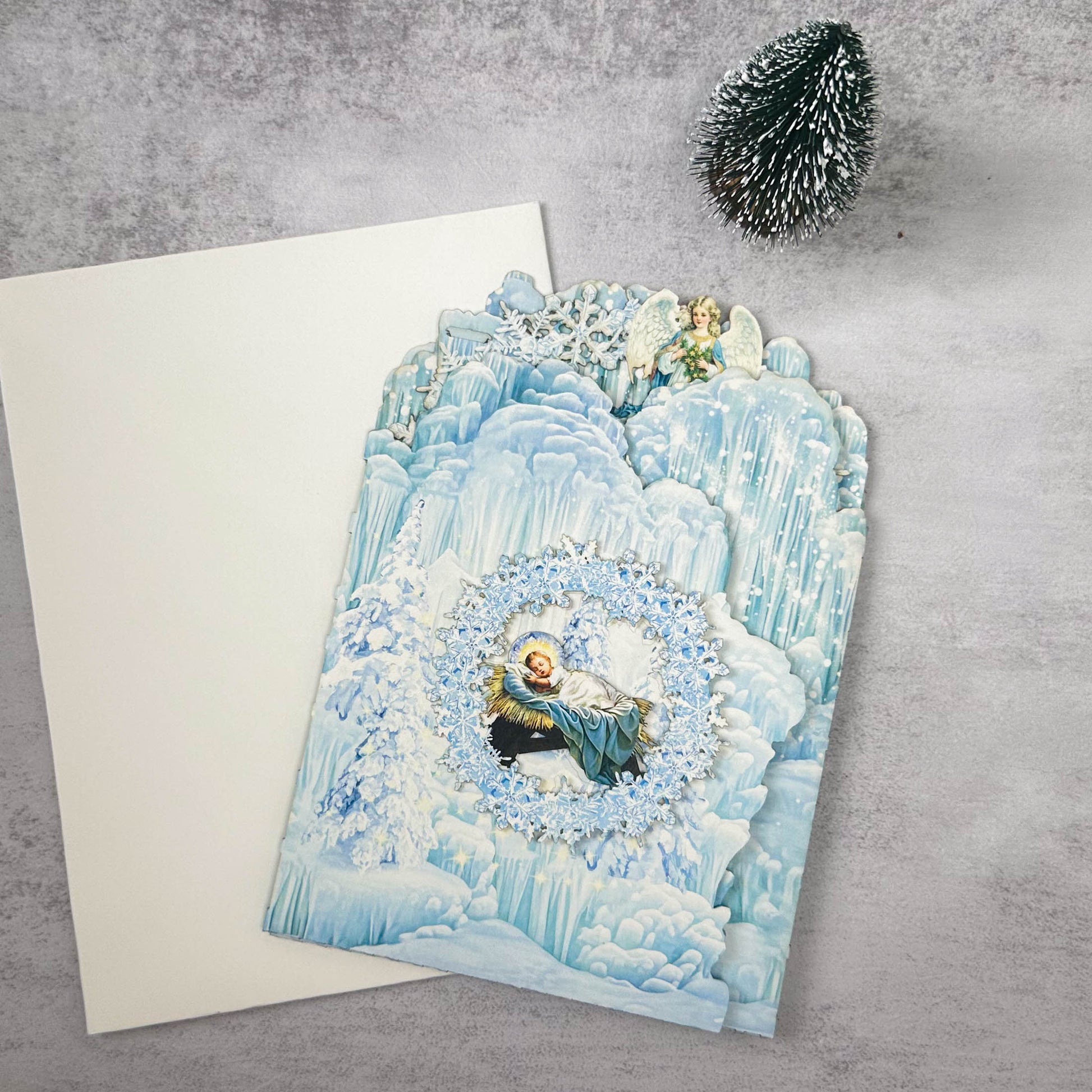 Handmade 3D Pop Up Christmas Card | Nativity Scene Winter Wonderland | Religious Holiday Cards with Envelope | Made in UK | Fast Delivery